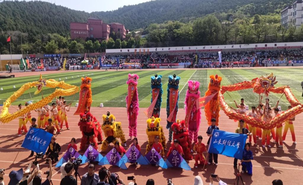 3、舞龙舞狮:是中国传统文化的瑰宝,它代表了祥瑞、祝福和荣誉。在表演中,龙和狮子欢腾跳跃、翻腾起舞,向大众展示1948图案、1139图案以及山东财经大学校徽图案,表现出不屈不挠、团结协作的精神。