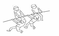 (3)锚人姿势:队尾参赛选手被称为锚人。绳子应沿靠身体从一侧腰间通过后背和对侧肩膀上方到前面,而后从腋窝下通过并甩向后外方,绳子的剩余部分应随势而置(注意不要影响参与者的正常移动)。锚人应用常规握绳姿势握紧绳子,如掌心相对,手臂伸向前方。