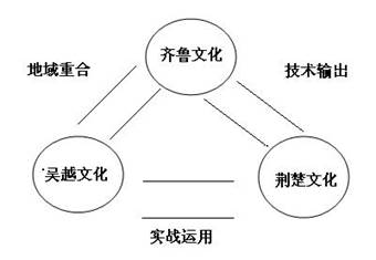 钩强之术始创于鲁人,首发于荆襄水上战场,而后遍播于华夏诸邦。从地缘文化学角度来看,拔河运动在齐鲁诸国得到承袭和发展,是一种先进军事文化演进和普及过程的必然结果。首先,公元前485年,齐国内乱之时一度被数国围攻,在地面战场失利的局面下仍能于黄海大败吴军,就能够证明其海军战斗力是极为强悍的,这场海战也是对齐鲁军事文化体系中海军文化悠久传统的历史见证。其次,公元前473年,越国灭吴之后尽得吴国在山东鲁南地区的领地,于后来迁都到山东琅琊(今山东省胶南市朗琊乡)达93年之久,并在此期间联合齐国进攻楚国,从而导致了钩强的诞生。由此,我们可以推导出关于拔河运动的前身在三大文化中诞生和传导机制的逻辑图式(见图1-4-1)。