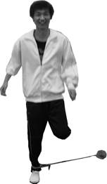 正、反摇单脚跳:正摇绳或反摇绳,一脚悬空抬起,另一只脚支撑连续跳,称为正、反摇单脚跳。先练习较有力量的一只脚,熟练后两脚交替练。