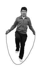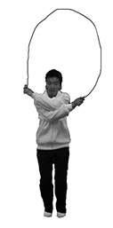 比赛时,按照规定的动作,或单摇跳,或双摇跳。(见图3-21-1)