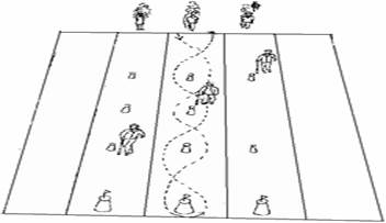 也可以将赛道内的直线跑改为蛇形跑的比赛方式。