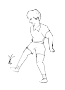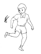 游戏者将毽抛起,待毽落至腰部时,右腿屈膝用脚内侧向上连续击毽,每击一次右脚都要着地。左脚根据毽子位置及时调整站位,注意保持身体平衡(见图3-18-2)。