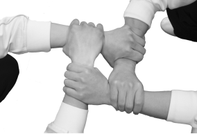 比赛开始前,“战马”需要用自己的手握住另一只手的手腕,然后再用未握腕的手握住对方的手腕,四只手相互搭握成“井字马鞍状”(见图1-3-3)。第三个选手—即“骑士”骑在“马鞍”上,两腿分别骑跨在 “战马”的两臂之间(见图1-3-4), “骑士”要求姿势端正,身体绷紧,随时与 “战马”保持良好沟通。